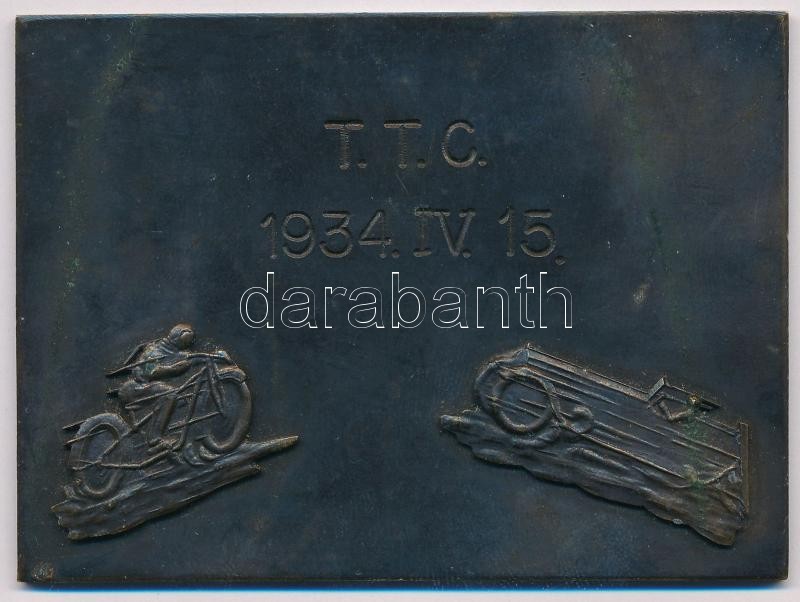 Leírás: 1934. "T.T.C. 1934.IV.15." Br motorsport emlékplakett (58x80mm) T:2-