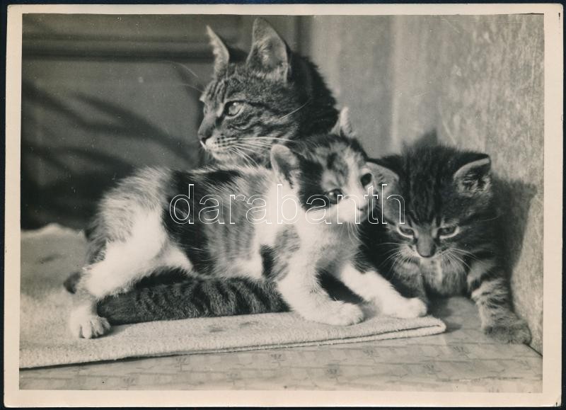 Leírás: cca 1934 Kinszki Imre (1901-1945) budapesti fotóművész hagyatékából, pecséttel jelzett, aláírt vintage fotó (Cica család), 13x18 cm