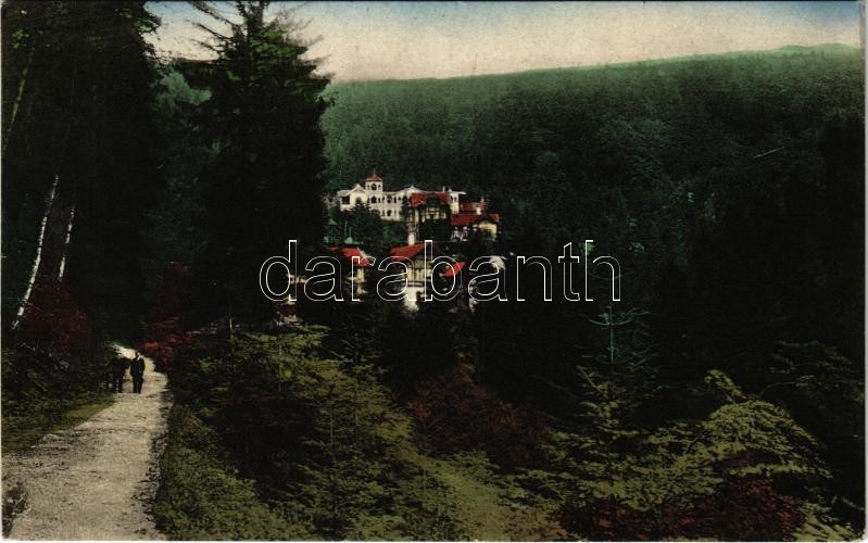 Leírás: 1927 Stószfürdő, Stoósz-fürdő, Kúpele Stós; Pohled z dálky z "Cesty rusalek" / út, fürdő látképe / road, spa, bath, general view