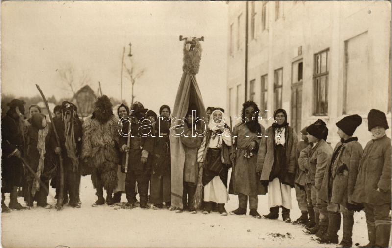 Leírás: 1918 Vashkivtsi, Waschkoutz (Bukovina, Bukowina); Faschingfest (Farsang) / folklore, carnival. photo