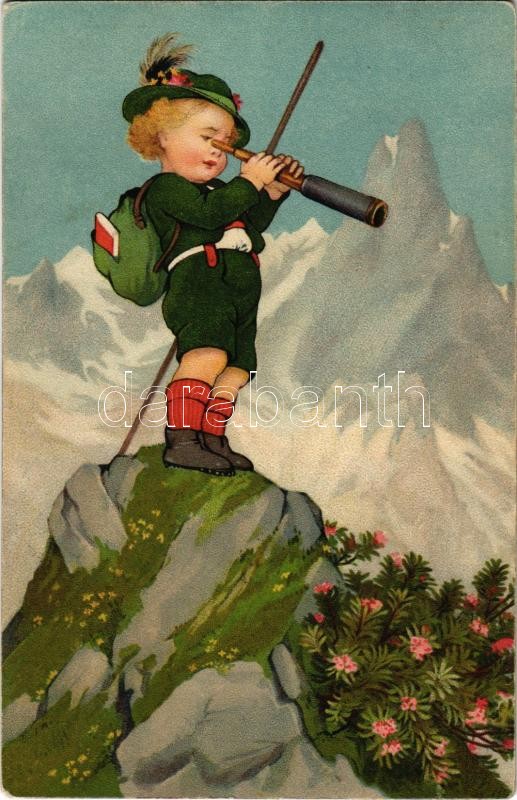 1921 Hiking boy. Children art postcard. No. 301. litho (EK) https://www.darabanth.com/hu/373-Gyorsarveres/373.0/Kepeslapok/Gyerek~1500068/1921-Hiking-boy-Children-art-postcard-No-301-litho-EK~II2176724