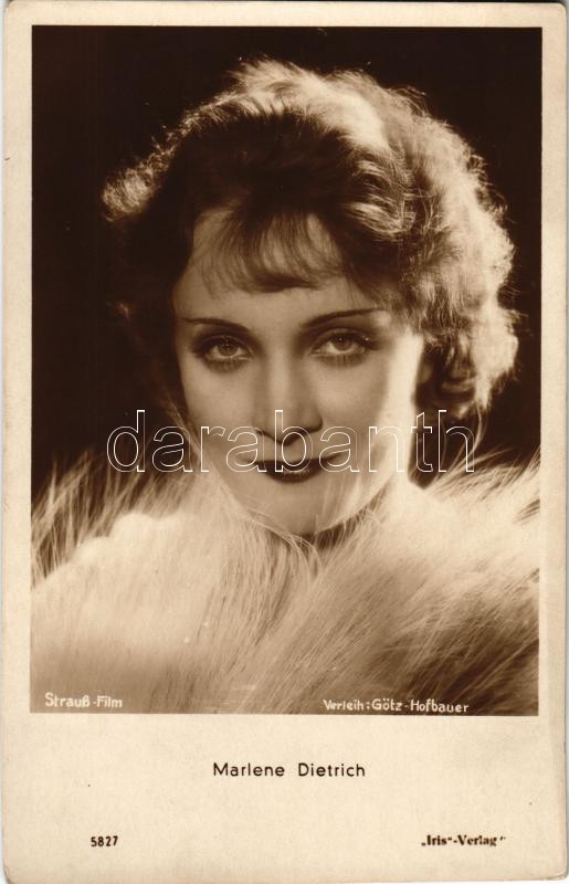 Marlene Dietrich. Strauß-Film. Iris-Verlag 5827. https://www.darabanth.com/hu/373-Gyorsarveres/373.0/Kepeslapok/Szinesz~1500092/Marlene-Dietrich-StrauC39F-Film-Iris-Verlag-5827~II2174949