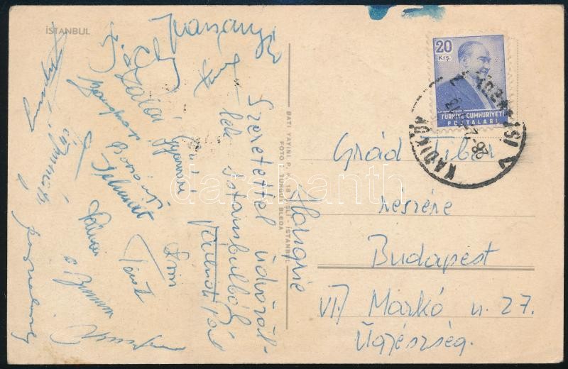 Leírás: Isztambulból küldött képeslap, többek között válogatott labdarúgók aláírásával (Várhidi, Tichy, stb.)