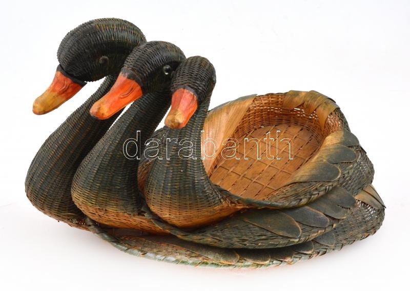 Leírás: 3 db vadkacsa figurális lapos kosár, festett nád, jó állapotban