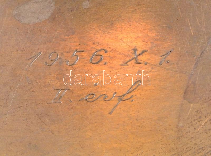 Alpakka tálca, "1956. X. 1. II. évf." gravírozással, jelzett, foltokka... https://www.darabanth.com/hu/373-Gyorsarveres/373.0/Mutargy-papirregiseg-egyeb/Bolhapiac~500011/Alpakka-talca-1956-X-1-II-evf-gravirozassal-jelzett-foltokkal-kopasokkal-23x37-cm~II2181949