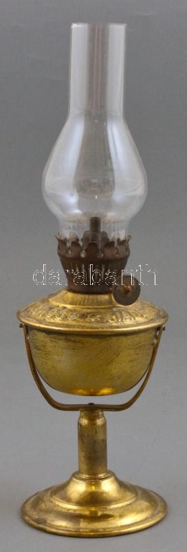 Leírás: Lampart régi petróleumlámpa, fém-üveg testtel, jelzett, kis csorbával m: 24 cm