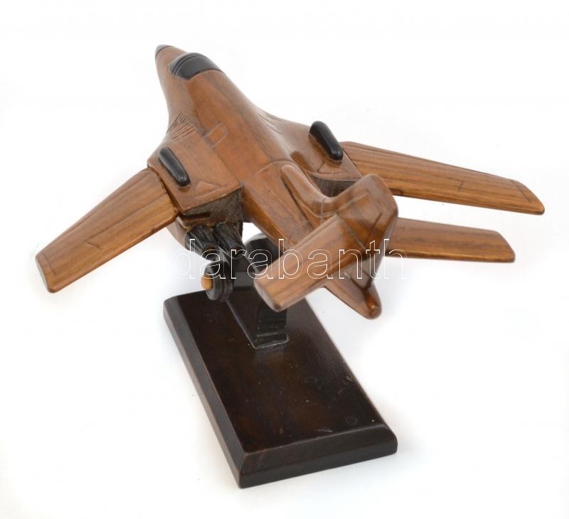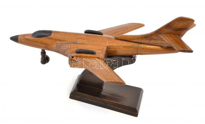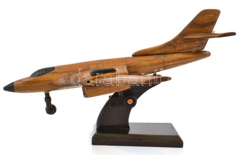 Leírás: MIG vadászrepülő, fából készült makett, állítható szárnyakkal, orron és szárnyakon kis kopásnyomokkal, 29×17 cm