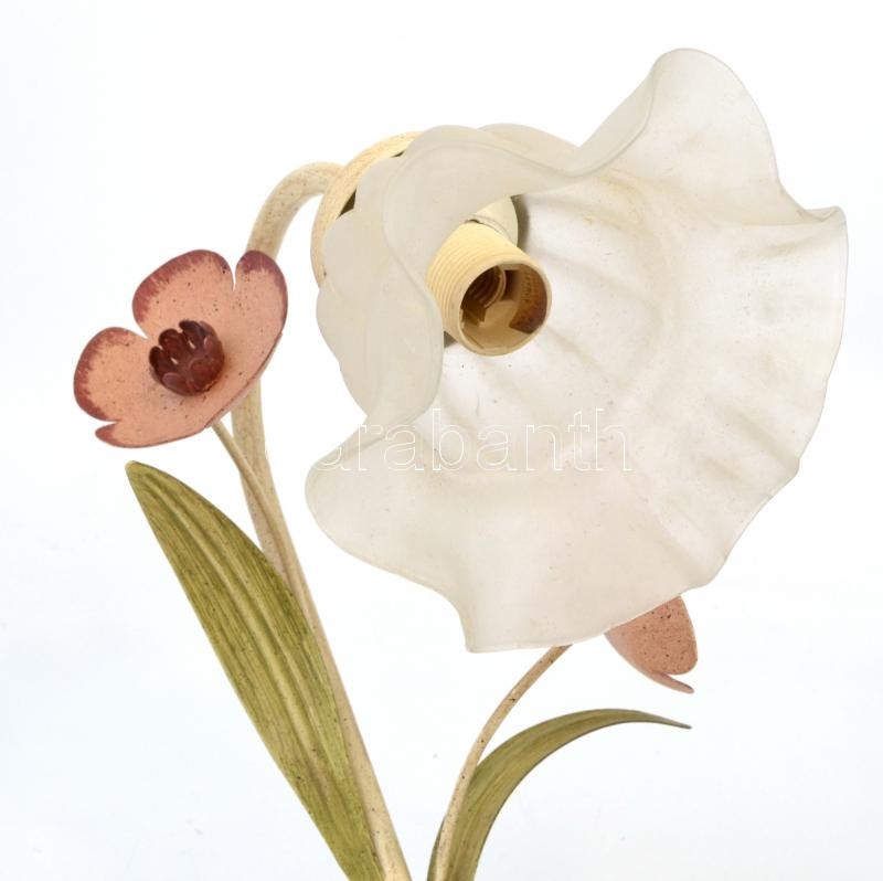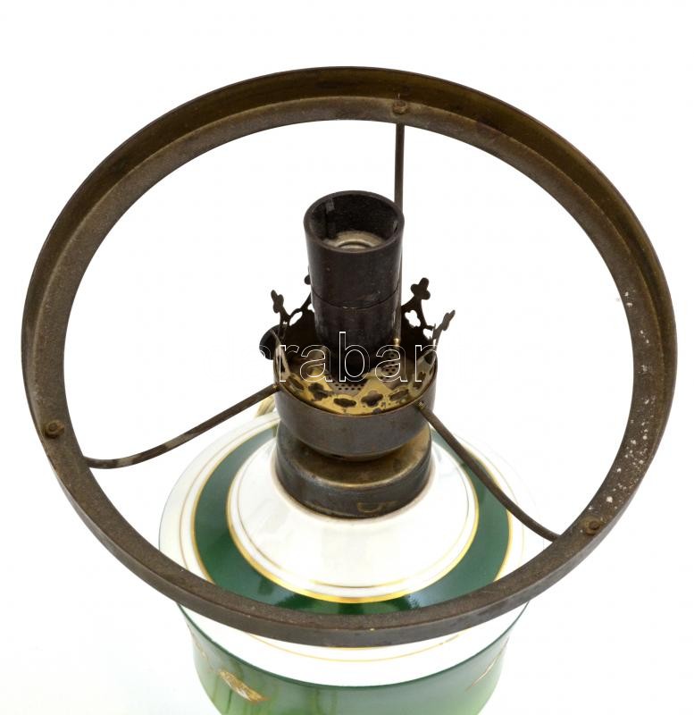 Össz. 2 db elektromos lámpa, egyik sem kipróbált: Wallendorf porcelán test, NDK gyártmány, részben kézzel festett alján jelzett, fém felsőrész búra nélkül és hiányzó anyával, ragasztott, h:32 cm + Fali lámpa, fém test, üveg búra, jelzés nélkül, apró kopásnyomokkal, h: 38 cm