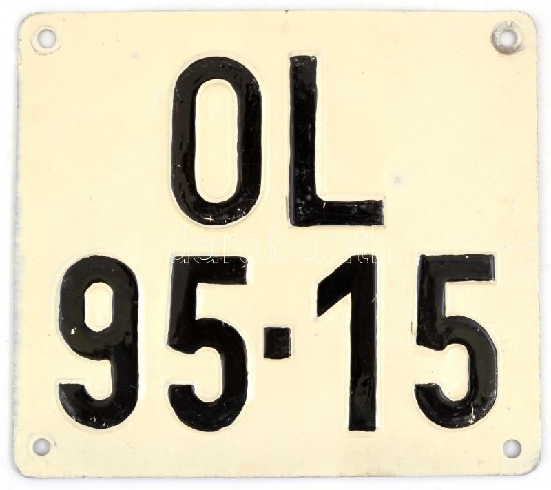 Leírás: Régi magyar rmotoros rendszám, apró kopásnyomokkal