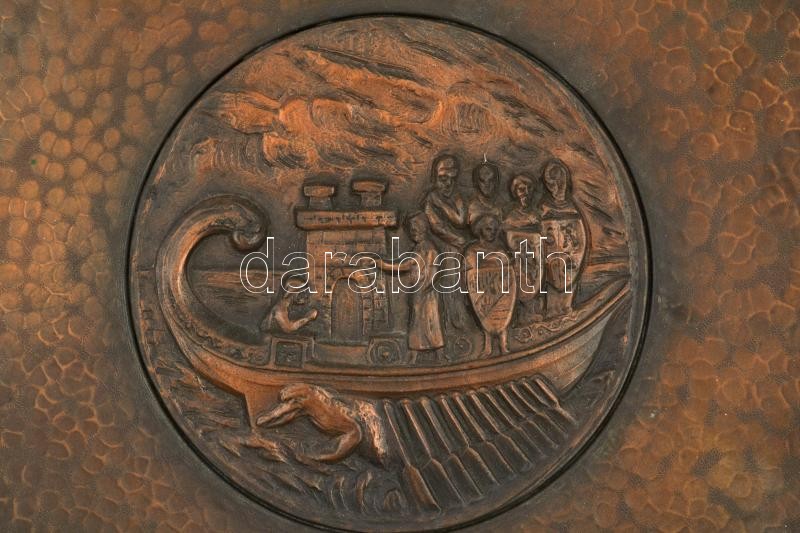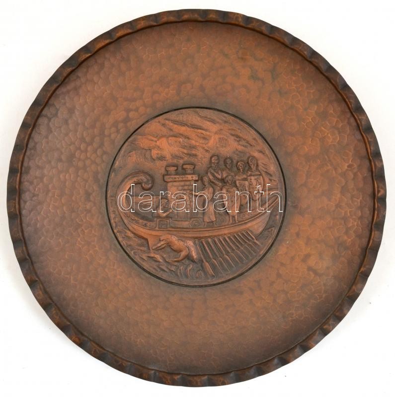 Leírás: Réz fali tányér gálya vagy csatahajó ábrázolással, d: 33,5 cm