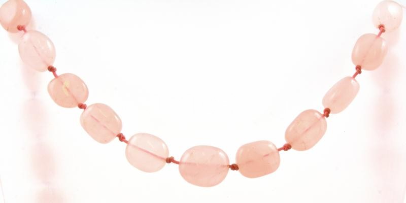 Leírás: Rózsakvarc nyaklánc, h: 52 cm