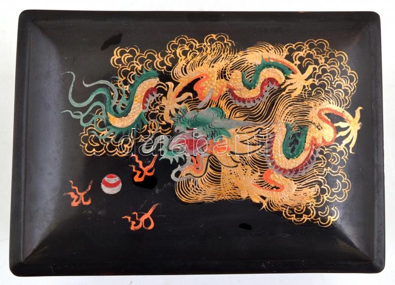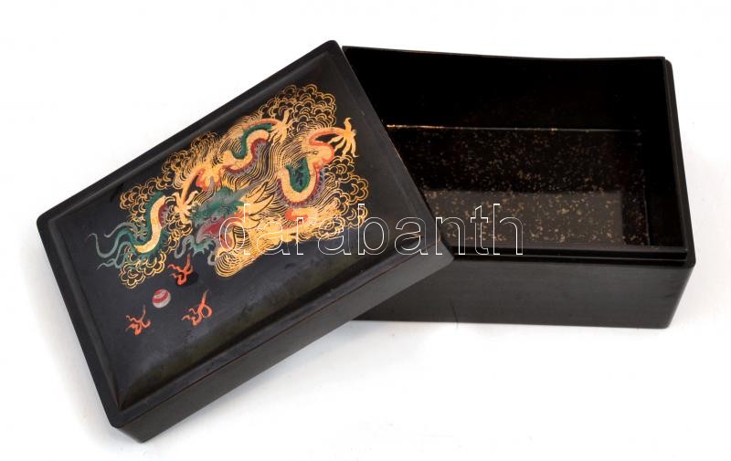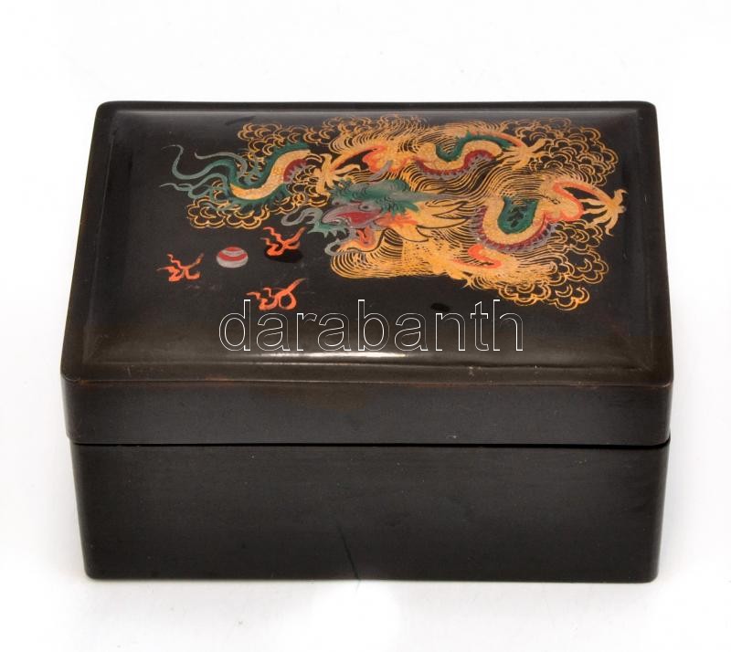 Leírás: Távol-keleti sárkány-figurás lakkdoboz, 9,5x13x6,5 cm