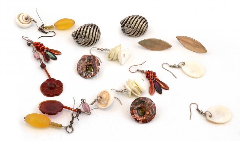Leírás: Vegyes fülbevaló tétel, 9 pár, az egyik sérült.