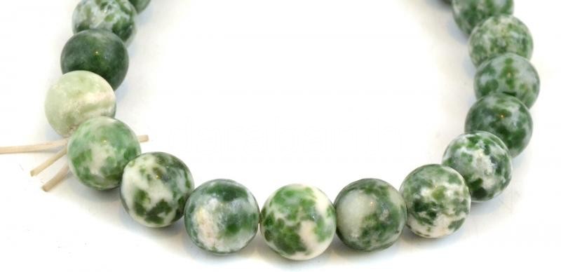 Leírás: Zöld-fehér gyöngyös ásvány karkötő, gumírozott d: 7 cm