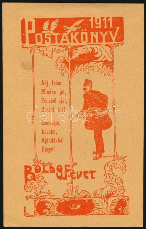 Leírás: 1911 Postakönyv. Bp., Pesti Könyvnyomda, korabeli reklámokkal, szecessziós borítóval, jelzett (Szép L.) 24 p.