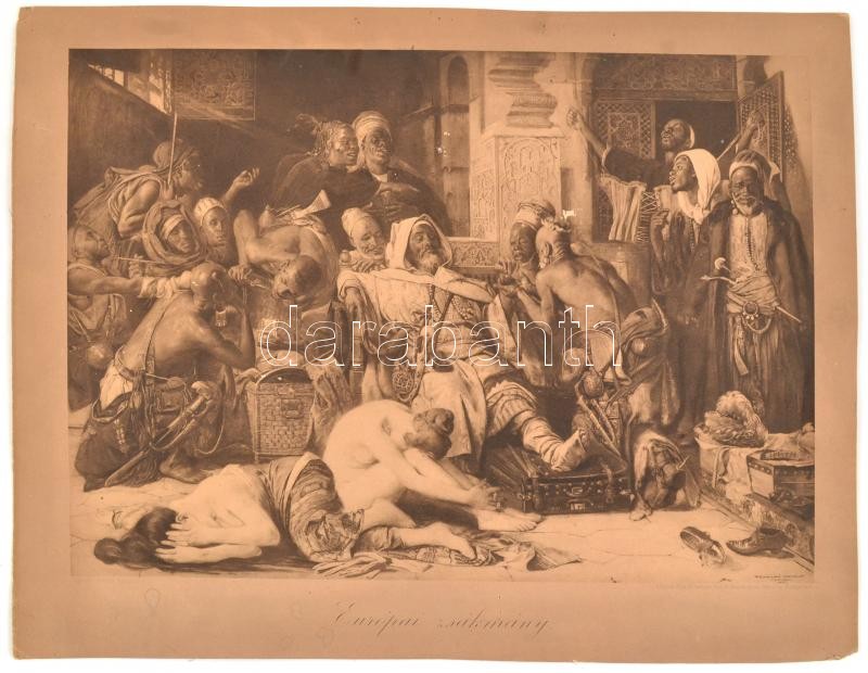 Tornai Gyula (1861-1928) festménye után: Európai zsákmány. Nyomat, papír, kissé sérült, jelzett a nyomaton. Könyves Kálmán magy. irod. és könyvk. r.t., 25,5x36 cm