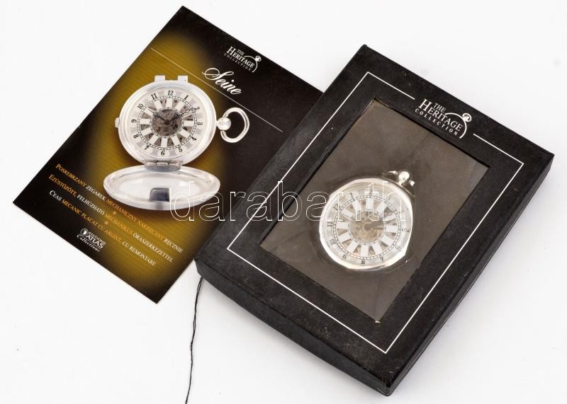 Leírás: Heritage collection Seine mechanikus, ezüstözött gyűjtői zsebóra, eredeti dobozában, leírással, újszerű állapotban. Működik. / Mechanic pocket watch