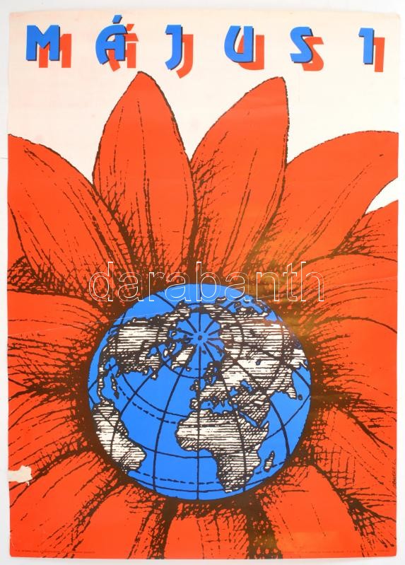 "Május 1." plakát, jelzett (Oravecz L.), hajtásnyommal, kis gyűrődések... https://www.darabanth.com/hu/373-Gyorsarveres/373.0/Mutargy-papirregiseg-egyeb/Plakat~500032/Majus-1-plakat-jelzett-Oravecz-L-hajtasnyommal-kis-gyurodesekkel-serulessel-66-5~II2181819