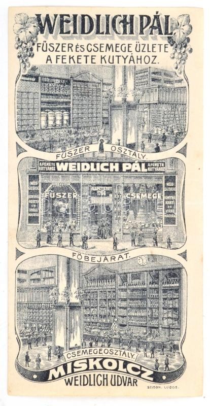 1918 Miskolc, Weidlich Pál Fűszer és Csemege Üzlete a Fekete Kutyához ... https://www.darabanth.com/hu/373-Gyorsarveres/373.0/Mutargy-papirregiseg-egyeb/Reklam~500022/1918-Miskolc-Weidlich-Pal-Fuszer-es-Csemege-Uzlete-a-Fekete-Kutyahoz-diszes-szamolocedula-~II2183344