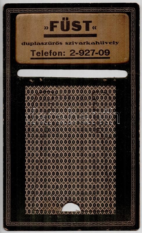 1925 "Füst" dupla szűrős szivarkahüvely naptártartó reklámtábla, jó ál... https://www.darabanth.com/hu/373-Gyorsarveres/373.0/Mutargy-papirregiseg-egyeb/Reklam~500022/1925-Fust-dupla-szuros-szivarkahuvely-naptartarto-reklamtabla-jo-allapotban-30-5C39718-5~II2181590