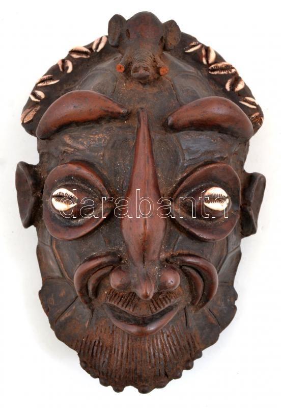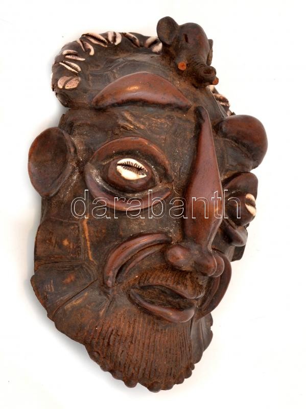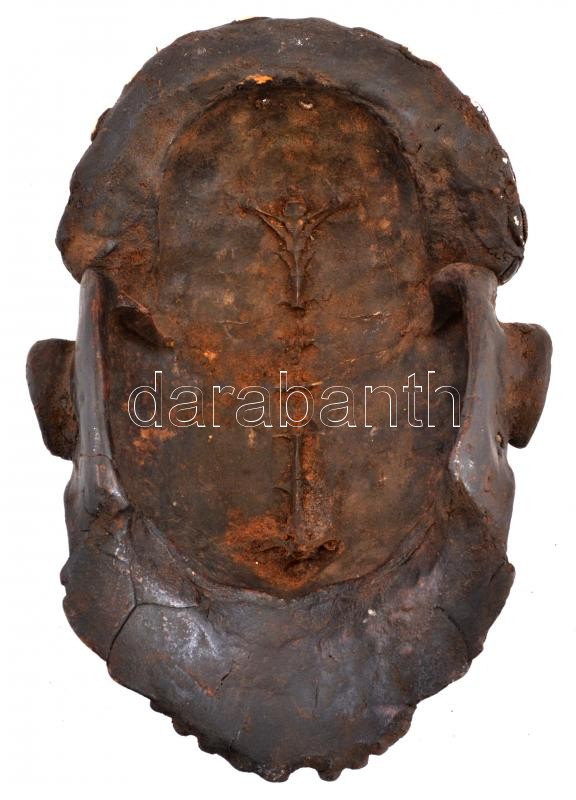 Leírás: Afrikai, faragott teknőspáncél maszk, berakással, 1900-1920 körül, sérült, 27x20 cm
