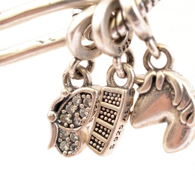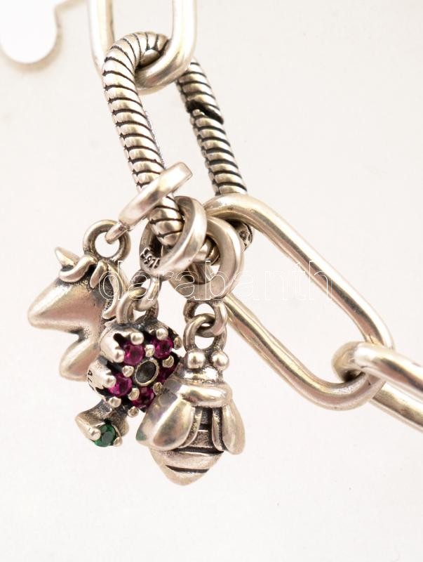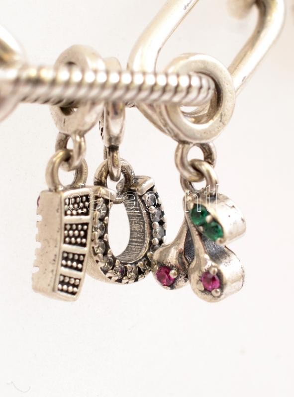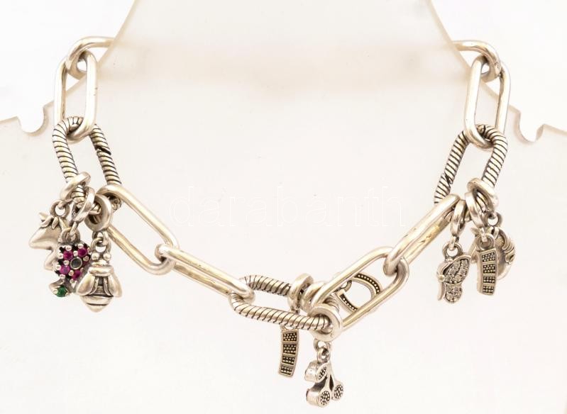 Leírás: Ezüst(Ag) karkötő, charmokkal, jelzett, h: 18 cm, bruttó:22,62 g