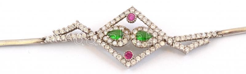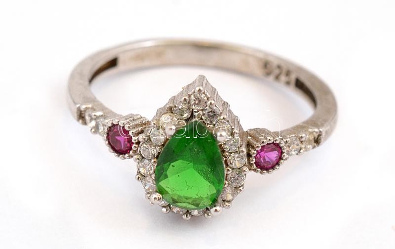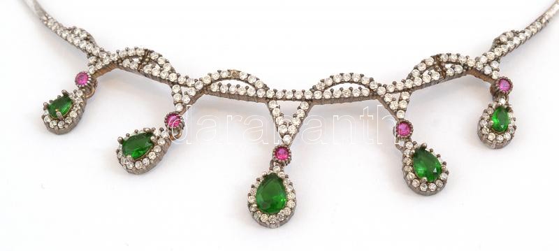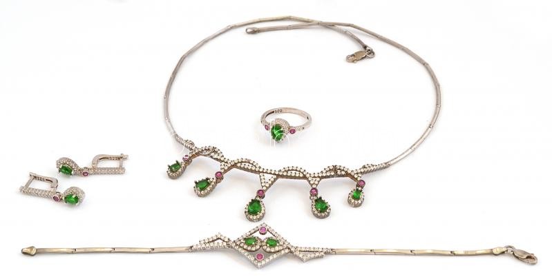 Leírás: Ezüst(Ag) színes kövekkel díszített ékszerszett (nyaklánc, karkötő, gyűrű, fülbevalópár), jelzett, bruttó: 26,9 g