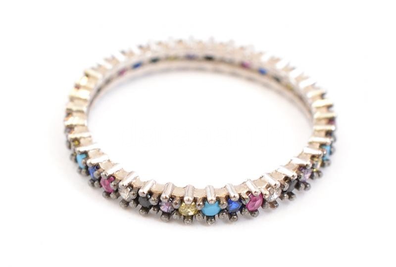 Leírás: Ezüst(Ag) színes kövekkel díszített gyűrű, jelzés nélkül, méret: 56, bruttó: 1,56 g