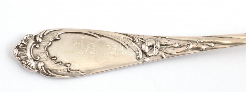 Leírás: Ezüst(Ag) virágmintás habos kanál, jelzett, h: 18 cm, nettó: 36,46 g