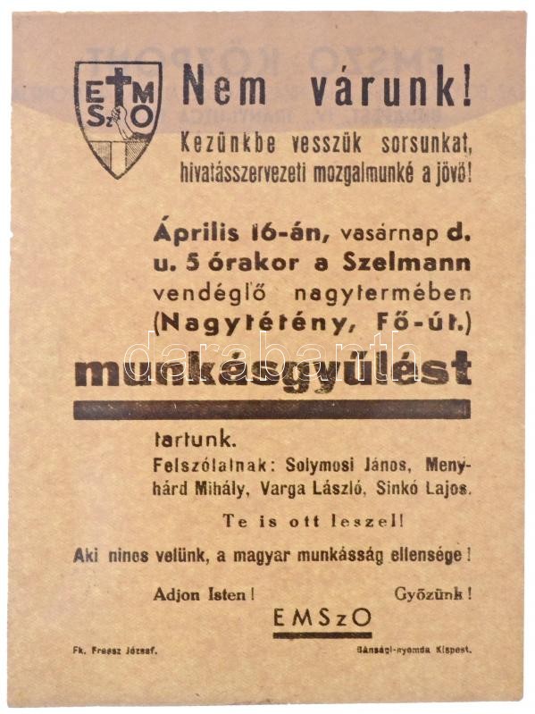 Leírás: 1935. "EMSZO (Egyházközségi Munkásosztályok)" zománcozott Br gomblyukjelvény munkásgyűlési szórólappal (11x16mm) T:2,2- zománchiba