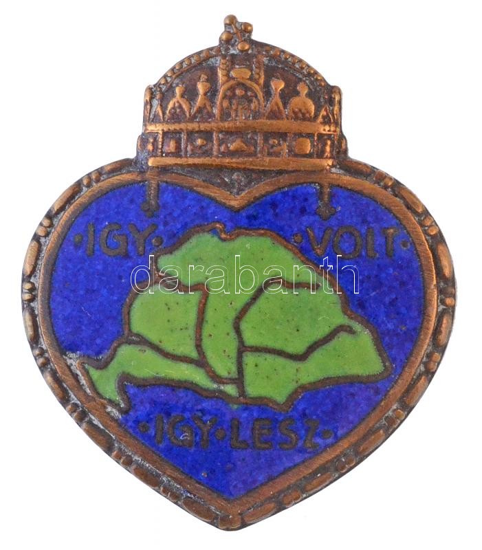 ~1930-1940. "Így volt - Így lesz / Nagy Magyarország" az Ereklyés Országzászló Nagybizottságának irredenta zománcozott Br gomblyukjelvénye, "JEROUSCHEK BPEST SEMMELWEISS U 7." gyártói jelzéssel + a mozgalom "Pártoló Tagsági Jegye az 1941. évre" (22,5x26,5mm) T:2 apró zománchiba