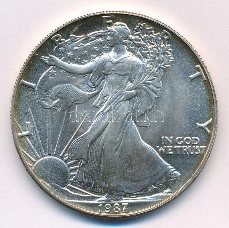 Amerikai Egyesült Államok 1987. 1$ Ag "Amerikai Sas" eredeti tokban, tanúsítvánnyal T:BU patina