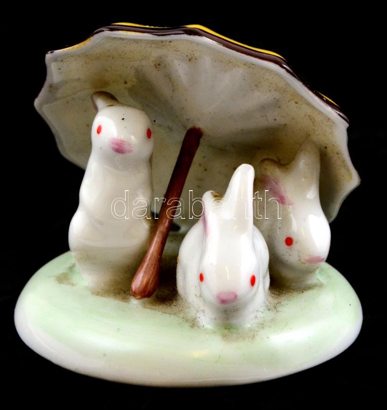 Leírás: Hollóházi porcelán esernyős nyuszik. Kézzel festett, jelzett, hibátlan, m: 5 cm