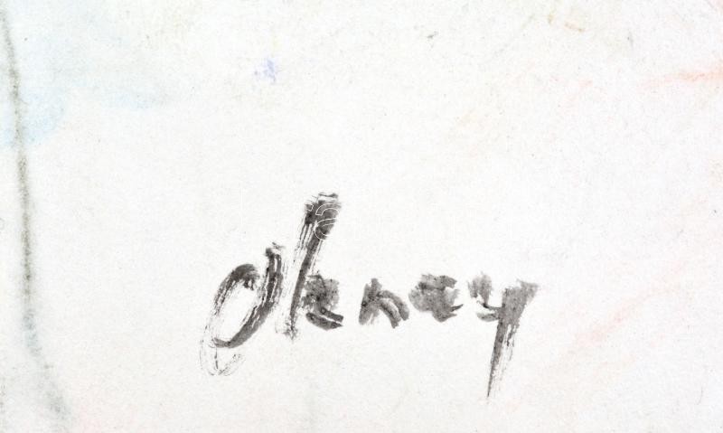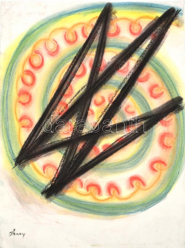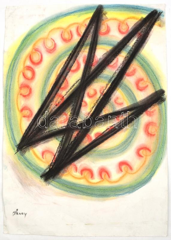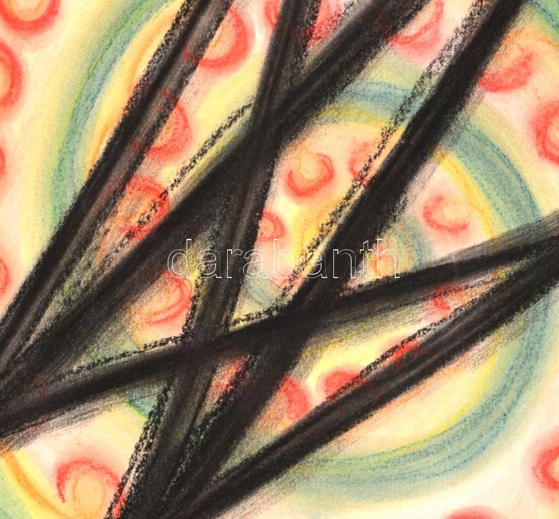 Leírás: Aknay jelzéssel: Absztrakt kompozíció. Kréta, papír, apró szakadással, 42×29,5 cm