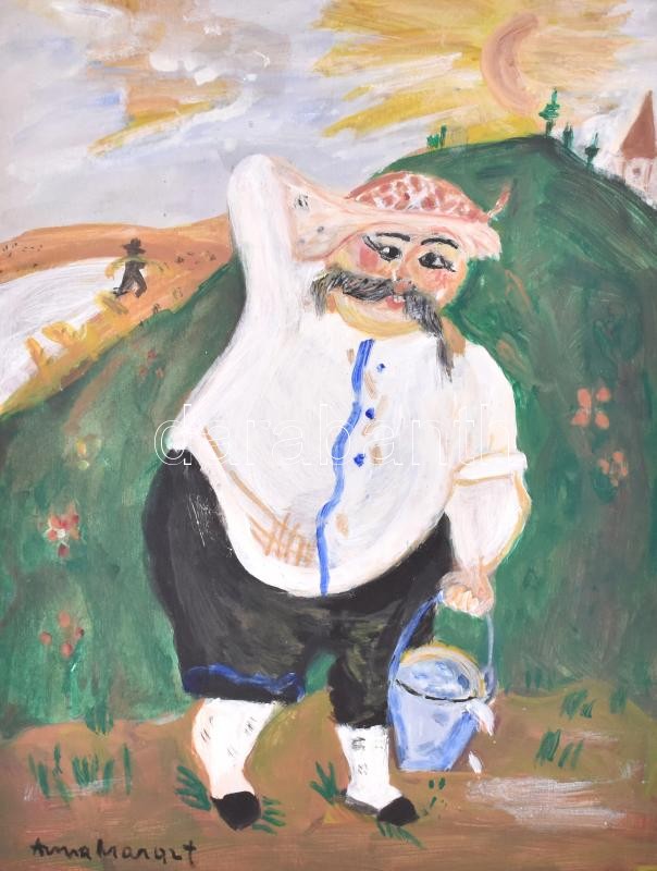 Leírás: Anna jelzéssel: Vízhordó. Vegyes technika, karton, 40x30,5 cm