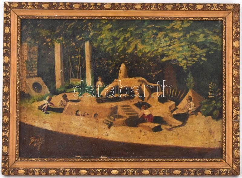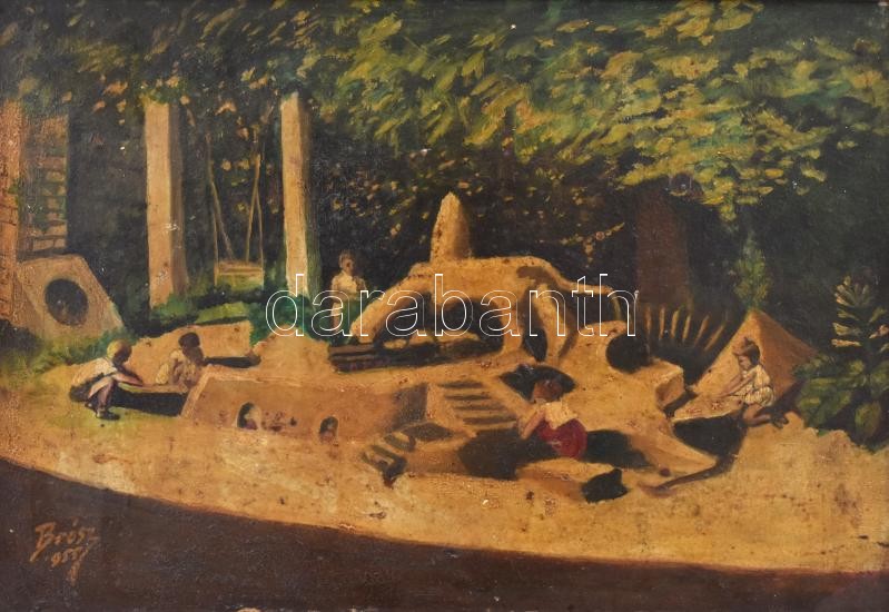Brósz Irma (1911-1976): Játszótér. Olaj, karton. Kissé sérült fa keret... https://www.darabanth.com/hu/374-Gyorsarveres/374.0/Festmenyek-es-grafikak/Festmenyek-es-grafikak~1/Brosz-Irma-1911-1976-Jatszoter-Olaj-karton-Kisse-serult-fa-keretben-26x38-cm~II2189576