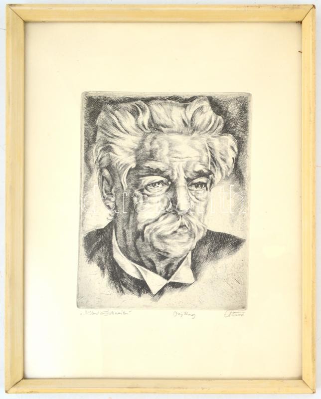 Leírás: Eberhard Tacke (1903-1989): Albert Schweitzer. Rézkarc, papír. Üvegezett fa keretben, 23,5×17,5 cm