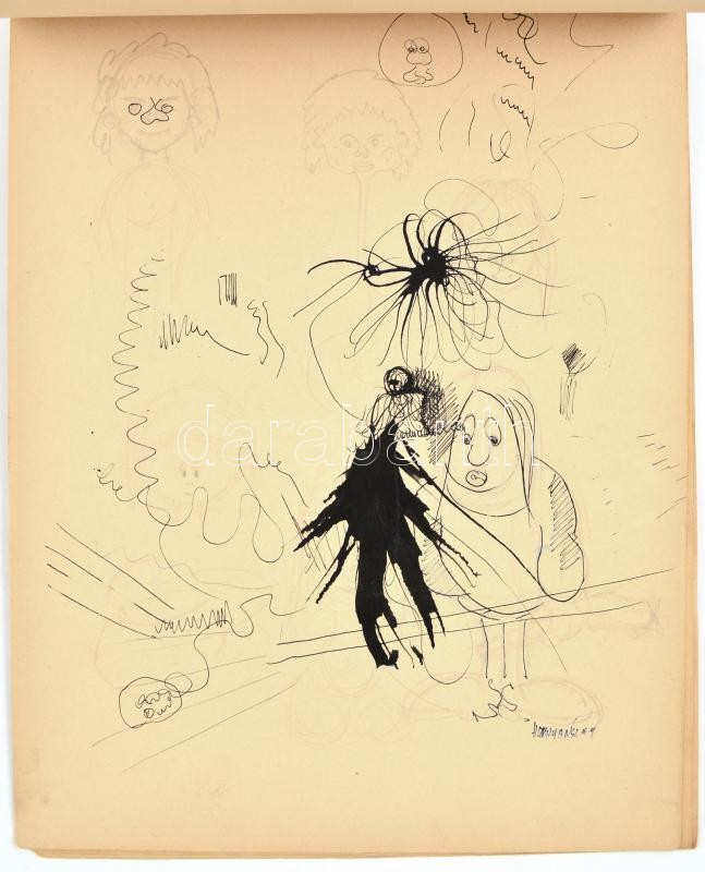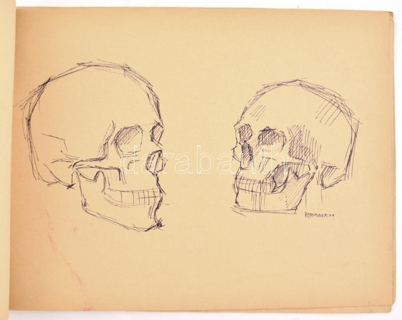 Hornyánszky jelzéssel: 5 db grafikai lap (Koponyák, mesebeli alakok és más tanulmányok). Ceruza, toll, tus, papír, kapoccsal összetűzve, 1 lap mérete 16x25 cm, többi ca. 24,5x32,5 cm
