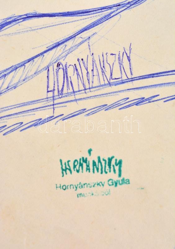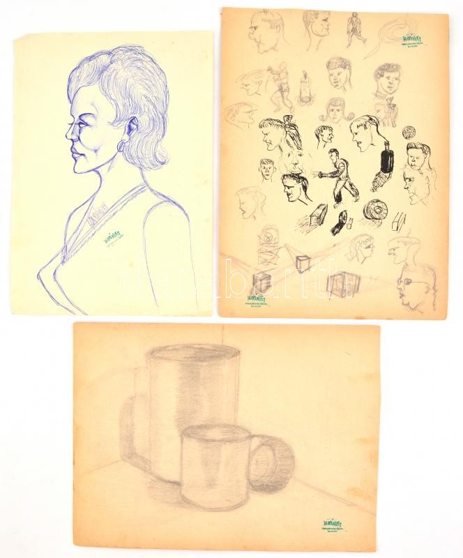 Hornyánszky jelzéssel és/vagy pecséttel: 3 db rajz és vázlat. Különféle technikák (tus, ceruza, golyóstoll), papír, ca. 30x21 és 32x24 cm közötti méretben