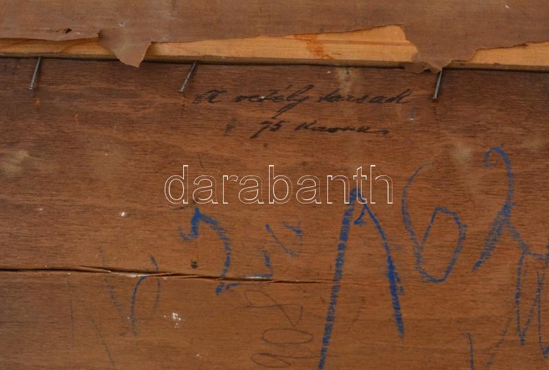 Leírás: Jelzés nélkül, 1910-25 körül: A vetélytársak (kiscsibék). Olaj, fa, sérült, hátoldalán címmel és 75 korona felirattal. Sérült fa keretben, 20,5×30 cm