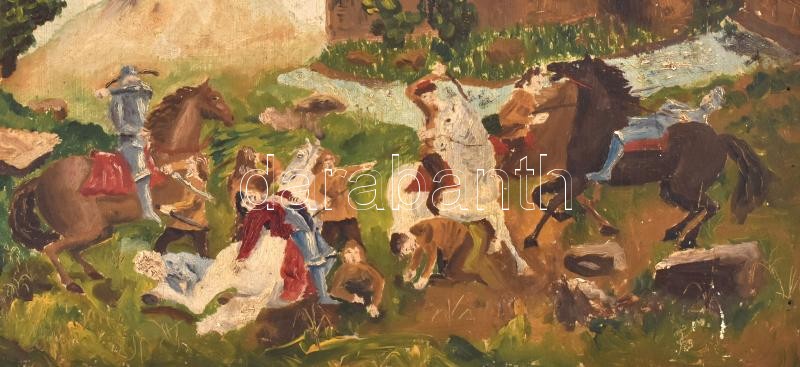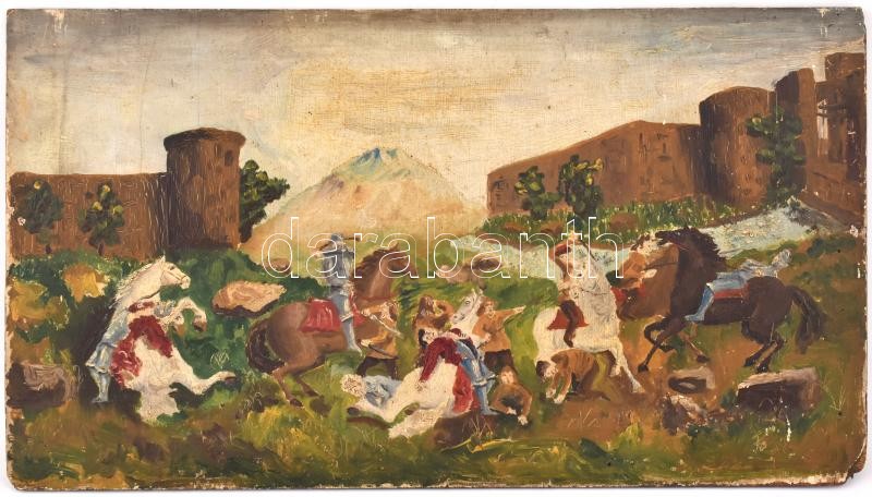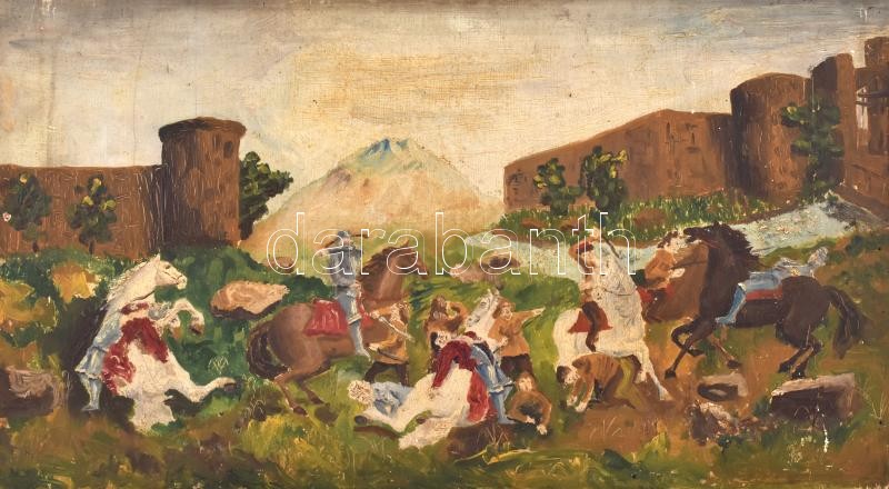 Jelzés nélkül: Csatajelenet. Olaj, fa, hátoldalán töredékes MNG bírála... https://www.darabanth.com/hu/374-Gyorsarveres/374.0/Festmenyek-es-grafikak/Festmenyek-es-grafikak~1/Jelzes-nelkul-Csatajelenet-Olaj-fa-hatoldalan-toredekes-MNG-biralati-cimkevel-sarkai~II2187739