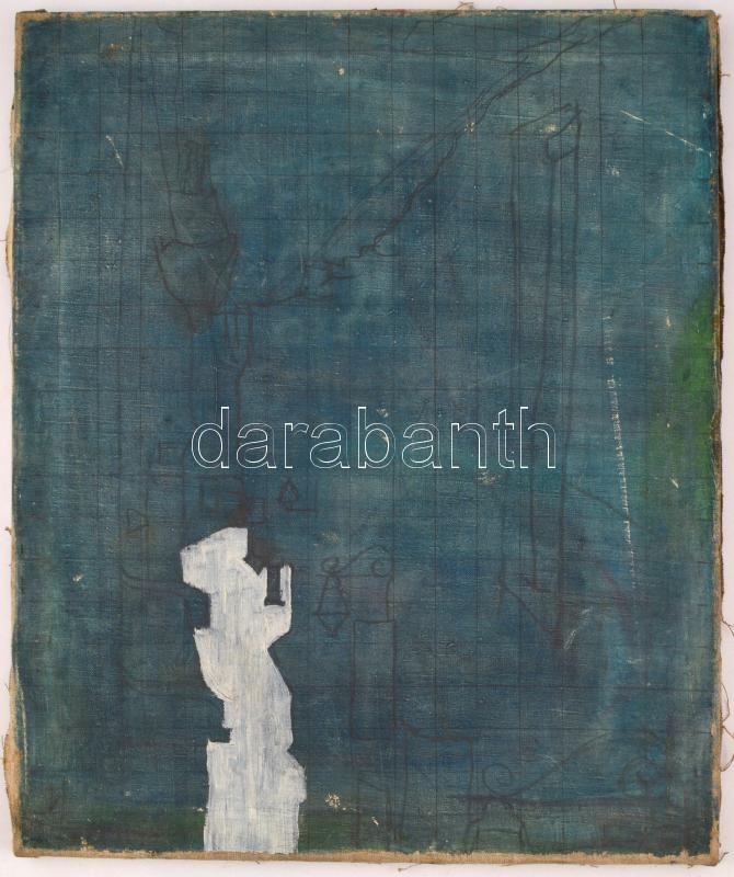 Leírás: Jelzés nélkül. Sikátor. Olaj, ceruza, vászon, kissé sérült, 60×50 cm