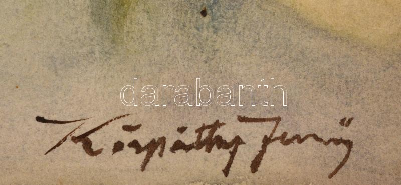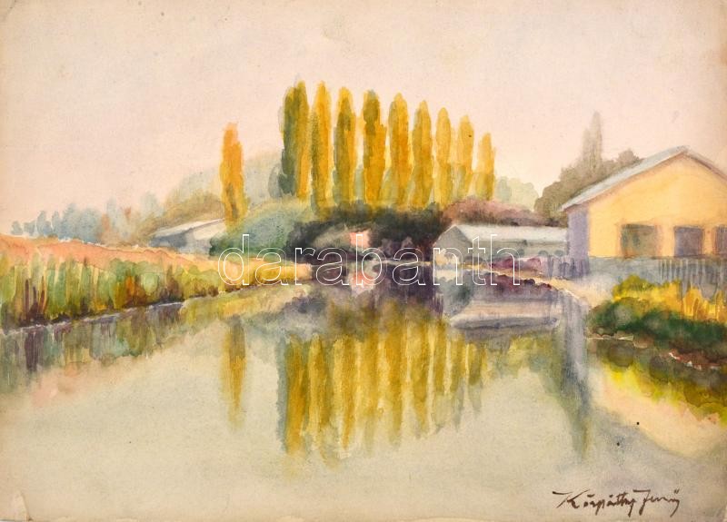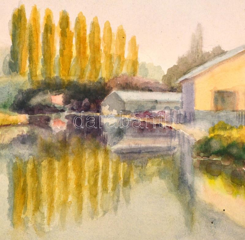Leírás: Kárpáthy jelzéssel: Dunapart. Akvarell, papír, kis szakadással, 25x35 cm