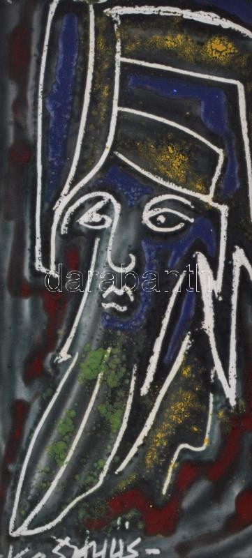 Leírás: Kesztyűs Ferenc (1932-): Lélektükröződés, 1997. Tűzzománc, jelzett, hátoldalán a művész bélyegzőjével és autográf soraival. Fa keretben, 18,5×8,5 cm