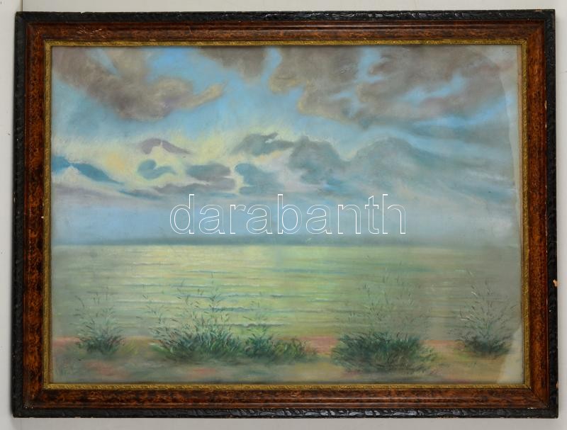 Leírás: Klimó István (1883-1961): Balaton. Pasztell, papír, hajtott, jelzett, üvegezett keretben, 48×68 cm