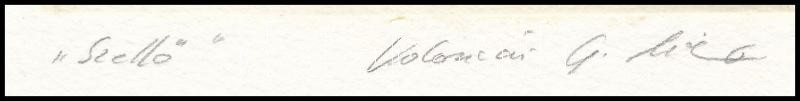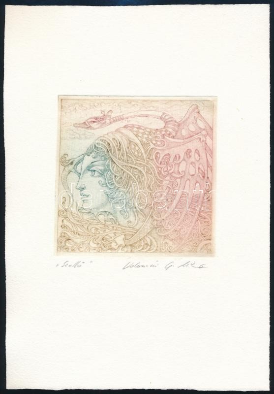 Leírás: Kolozsvári Grandpierre Miklós (1950-): Szellő. Színes rézkarc, papír, jelzett, 10×10 cm
