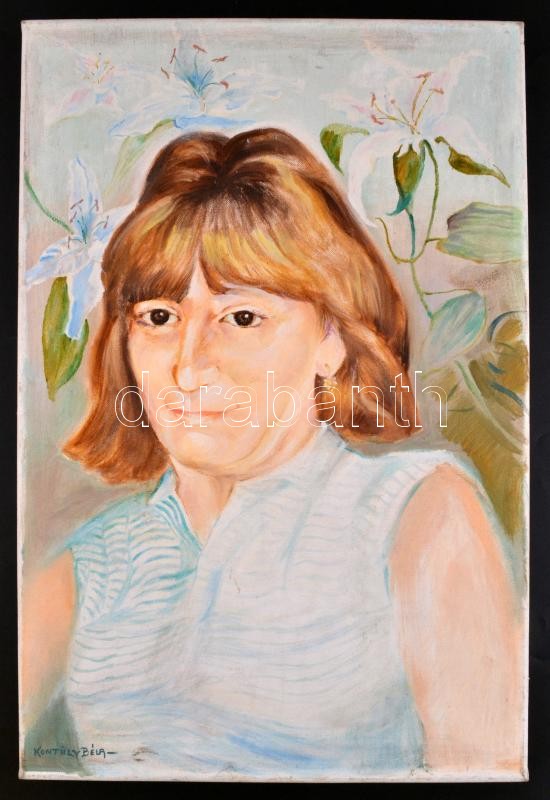 Leírás: Kontuly jelzéssel: Női arckép. Olaj, vászon, 60x40 cm