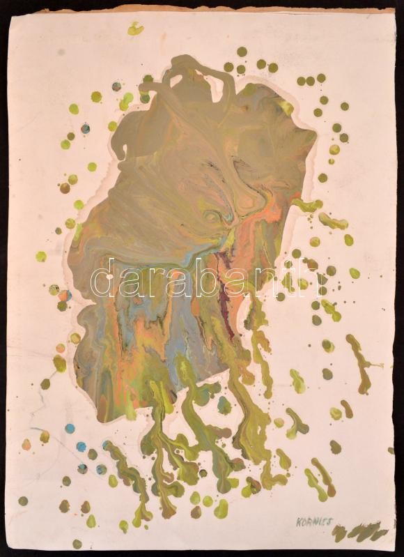 Leírás: Korniss jelzéssel: Absztrakt kompozíció. Akvarell, papír, lap törésekkel, 43×31 cm