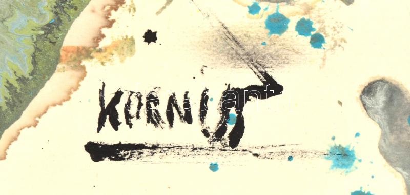 Leírás: Korniss jelzéssel: Örvényló formák. Olaj, papír, 33x45 cm