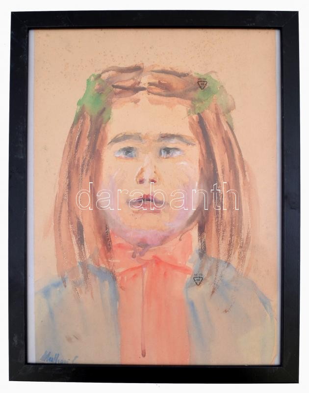 Leírás: Mattoni jelzéssel: Lány. Akvarell, papír. 40x30 cm üvegezett keretben